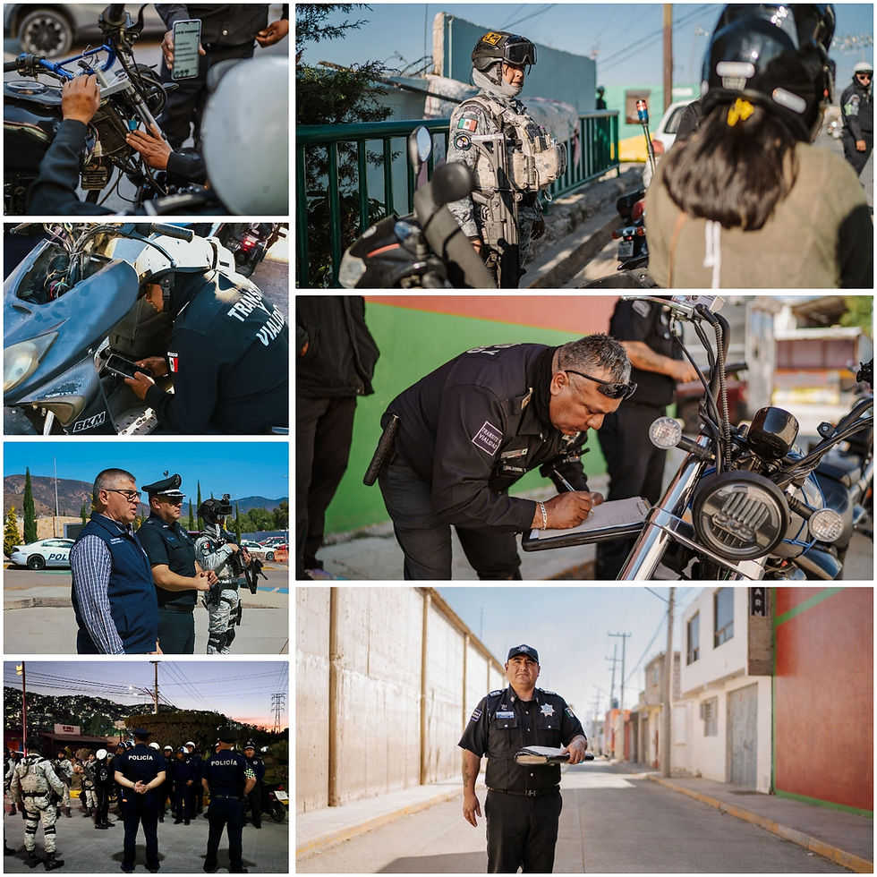 En atención directa a solicitudes y reportes realizados por delegadas y delegados, la Secretaría de Seguridad Pública, Tránsito y Vialidad de Pachuca implementó el operativo “Moto Segura” en las colonias Cubitos, La Raza, Felipe Ángeles y 20 de Noviembre, con el objetivo de fortalecer la prevención e inhibir conductas delictivas.